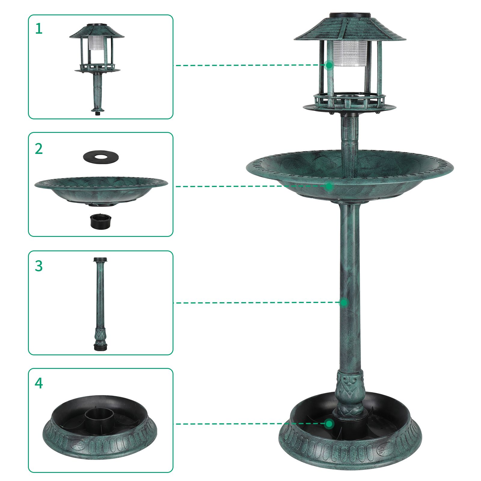 - Durable Weather-Resistant: Constructed from lightweight, high-density resin material, the bird bath is durable and withstands frost and sun exposure through all seasons.