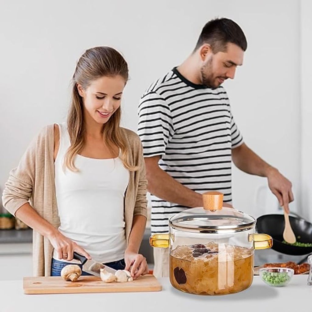 - 2. [TRANSPARENT DESIGN]: The transparent glass pot adopts a transparent design, and the cooking process can be seen without opening the lid. Whether you're stewing soup, cooking spaghetti, or preparing sauce for the stove in this glass stew pot, you can easily see your food from afar. This function is very convenient when performing various tasks in the kitchen, such as cutting vegetables and washing dishes.