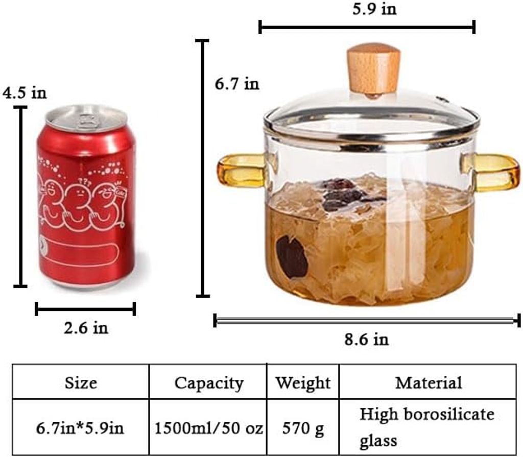 Clear Glass Simmer Pot with Lid for Cooking Potpourri Cookware 1.5L 50oz Saucepan Pots for Stove Top Small Soup Pan